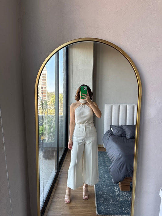 Blusa halter con detalle metal crema