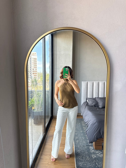 Blusa halter con detalle metal olivo