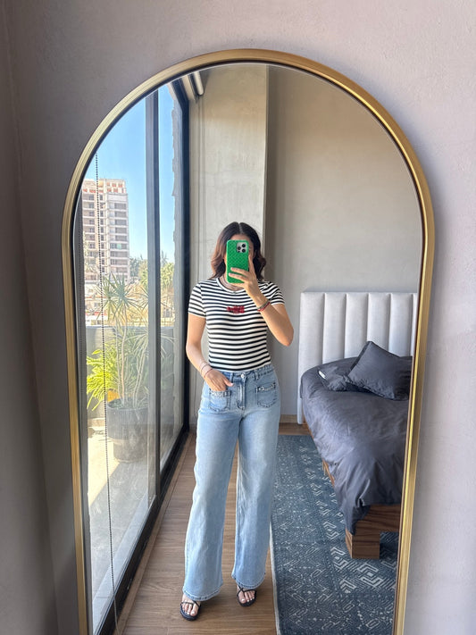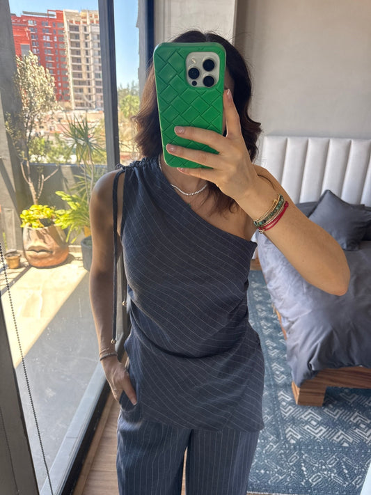 Set blusa y pantalón navy rayas gis