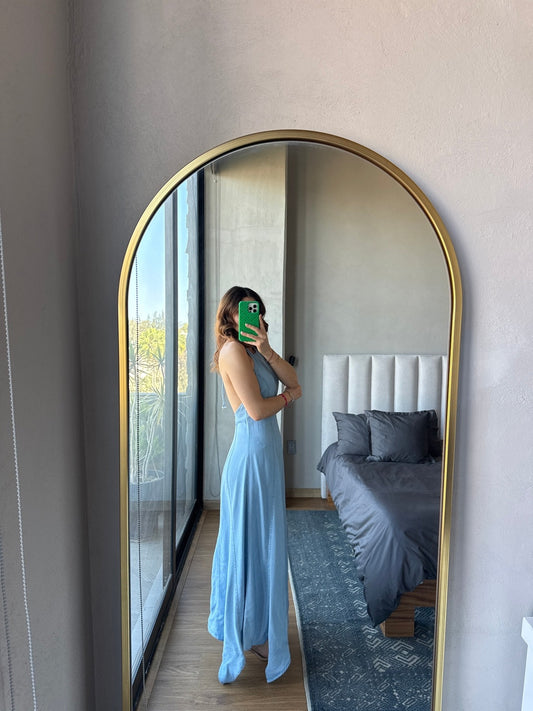 Vestido halter maxi denim