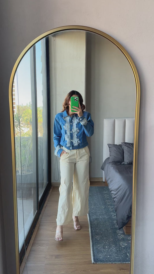 Chamarra denim detalles lace