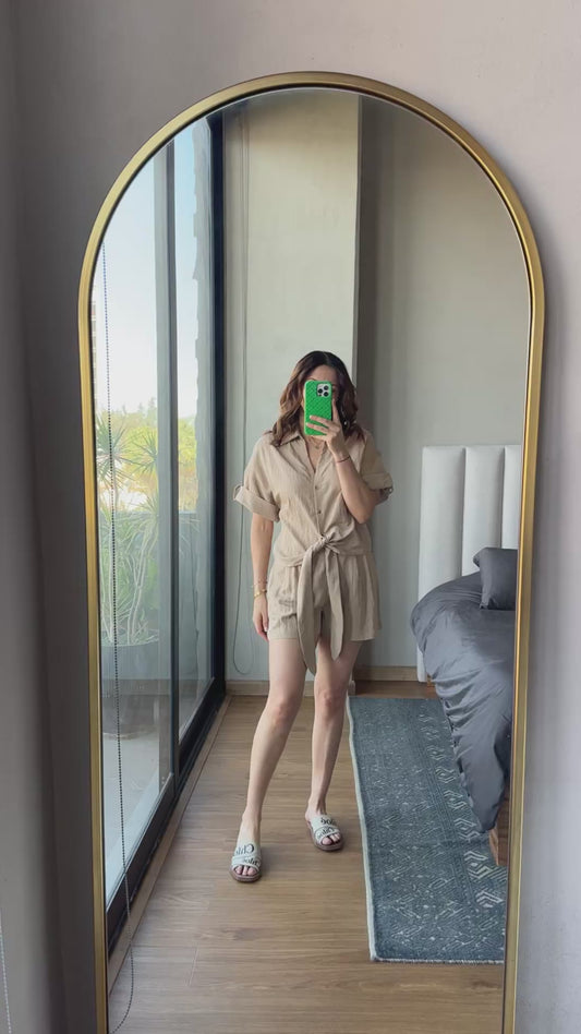 Set blusa botones nudo y short tan