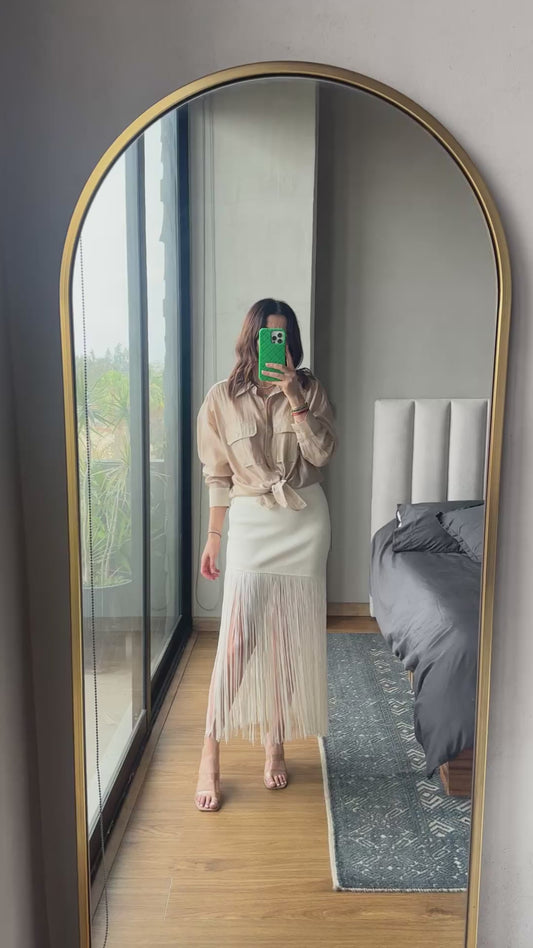 Falda spandex tiras crema