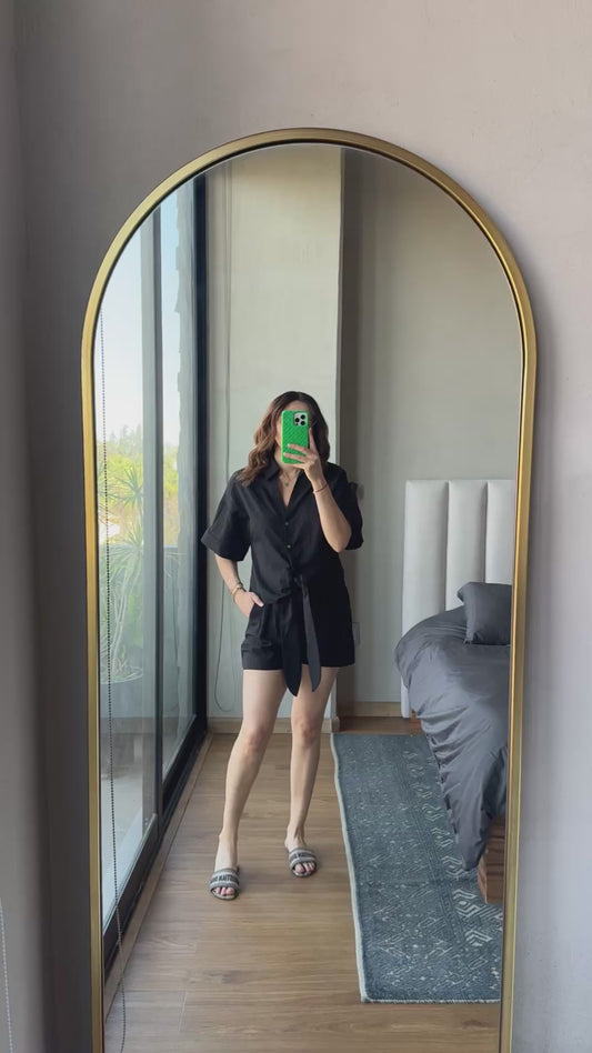 Set blusa botones nudo y short negro