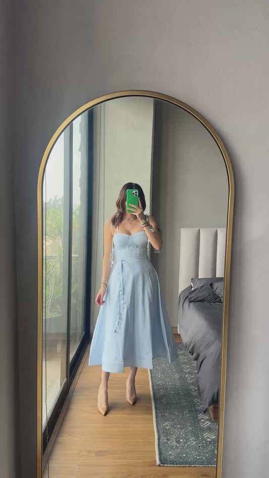 Vestido midi tirantes con detalle baby blue