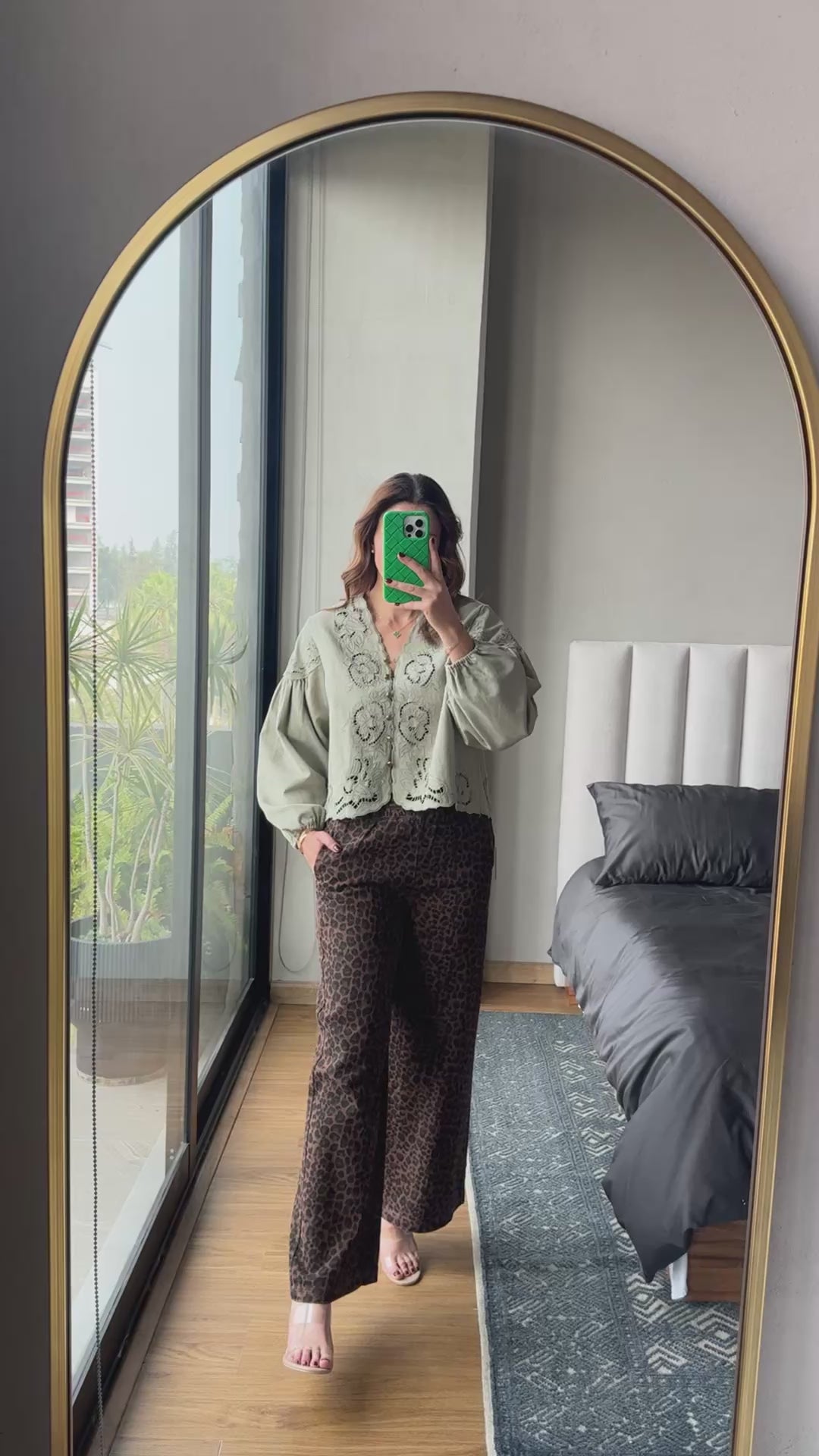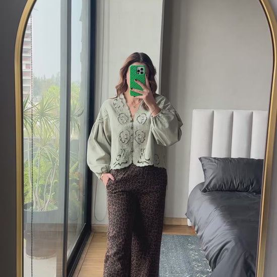 Blusa manga bombacha detalle corte laser al frente, Color olivo