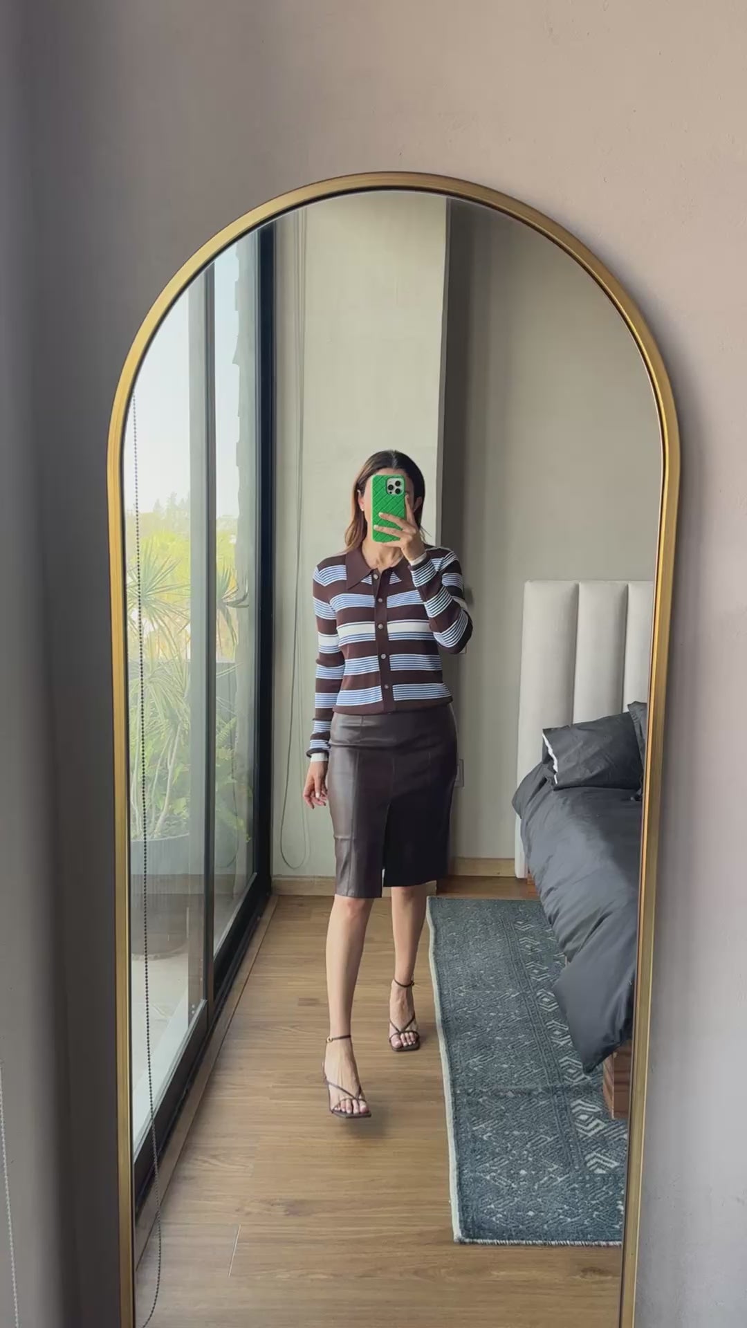 Cárdigan tipo polo botones print rayas, Color café, azul y blanco