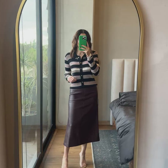 Falda lápiz tipo piel abierta al frente, Color tinto