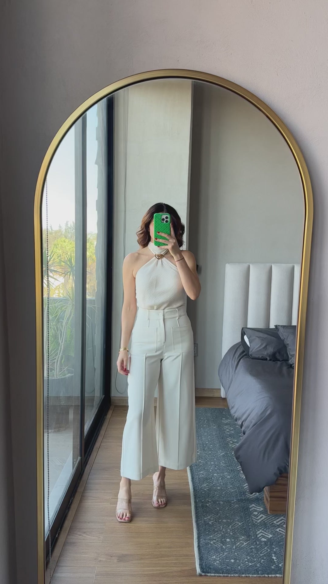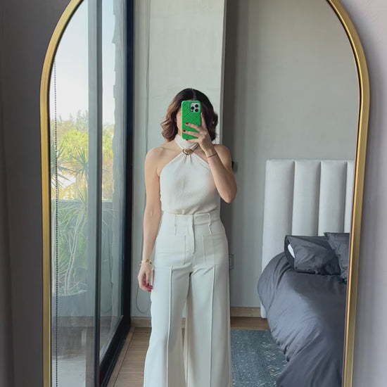 Blusa halter con detalle metal crema