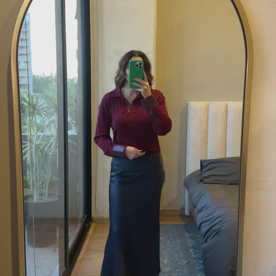 Blusa tejida tipo polo detalle piel en cuello y mangas y parte baja espalda , Color café