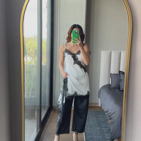 Blusa tirantes lace blanca con negro