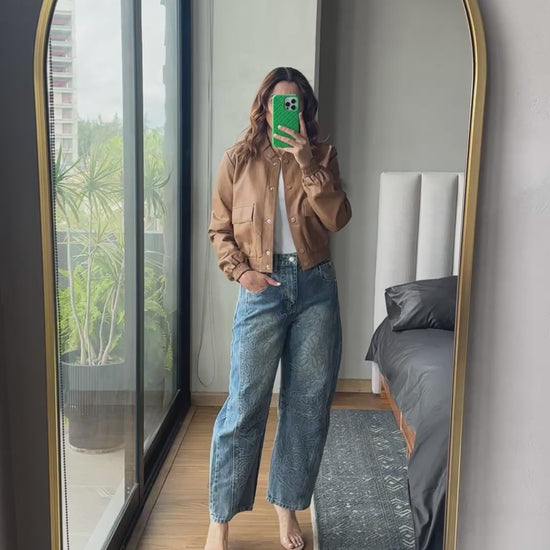 Chamarra estilo bomber botones y detalle bolsas, Color camel