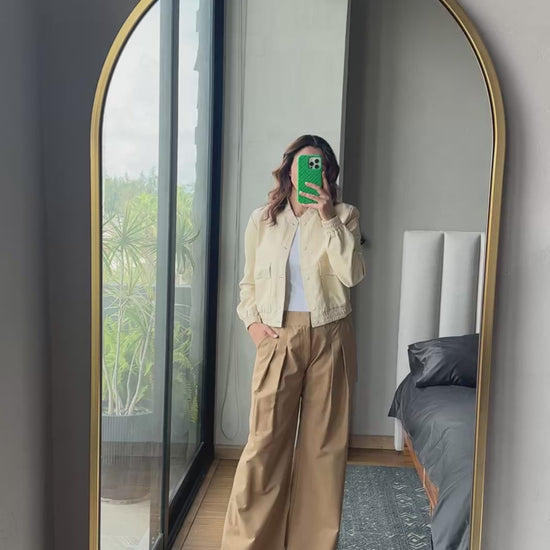 Chamarra estilo bomber botones y detalle bolsas, Color camel