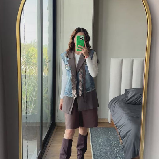 Chaleco con denim y corbata