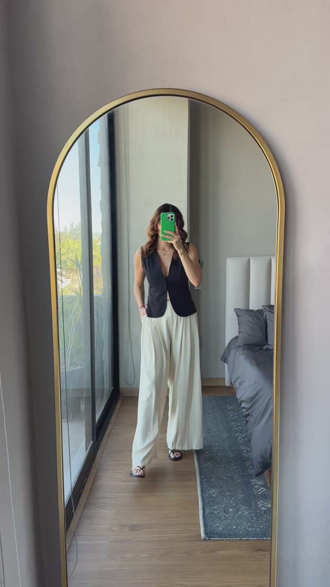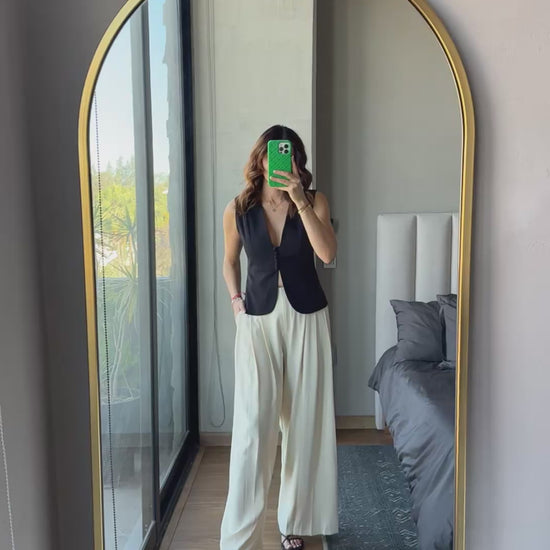 Pantalón pinzas pierna ancha crema