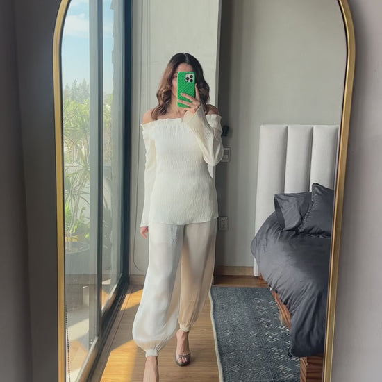 Pantalón satín globo resorte en pretina y tobillos, Color ivory
