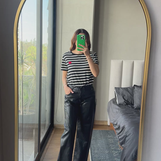 Tshirt rayas detalle corazon, Color blanco rayas negras