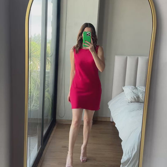 Vestido corto satín tirantes escote en espalda, Color rojo