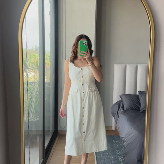 Vestido midi botones denim crema