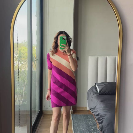 Vestido tejido rayas diagonal manga corta *PREVENTA, SE ENTREGAN A PARTIR DEL 09 DE DICIEMBRE*